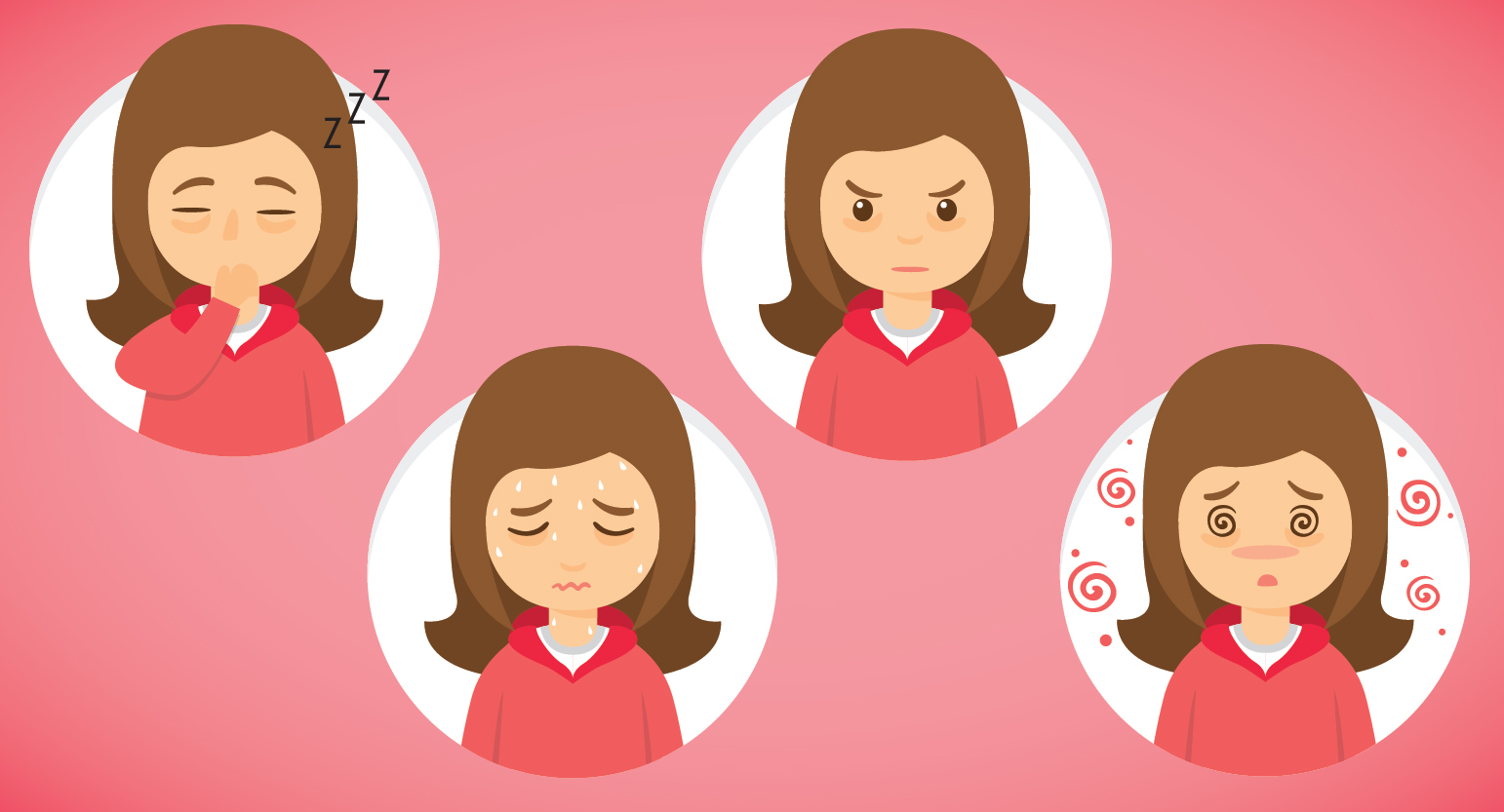 根據衞生署同家計會資料提出,香港婦女停經中位數係51歲,過程中體內荷爾蒙分泌會逐漸減少,失去生殖能力,引起生理同心理轉變,以下係更年期嘅徵狀 :
