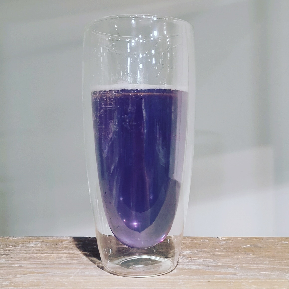 🍹 簡單沖泡:5朵蝶豆花加入 50ml 暖水泡10分鐘,加入300ml 梳打水,加入適量椰果、水蜜桃、冰塊,cheers🍹