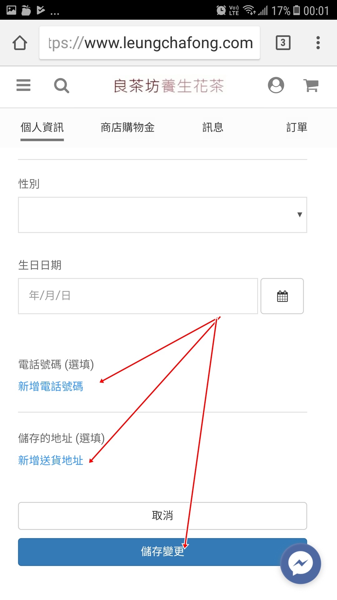 2. 登入後再重覆按右上人形按鈕一次,便可更新各項資料 (生日日期除外)。建議在此儲存電話號碼及送貨地址,省卻每張訂單重新輸入的時間,購物更快捷方便。