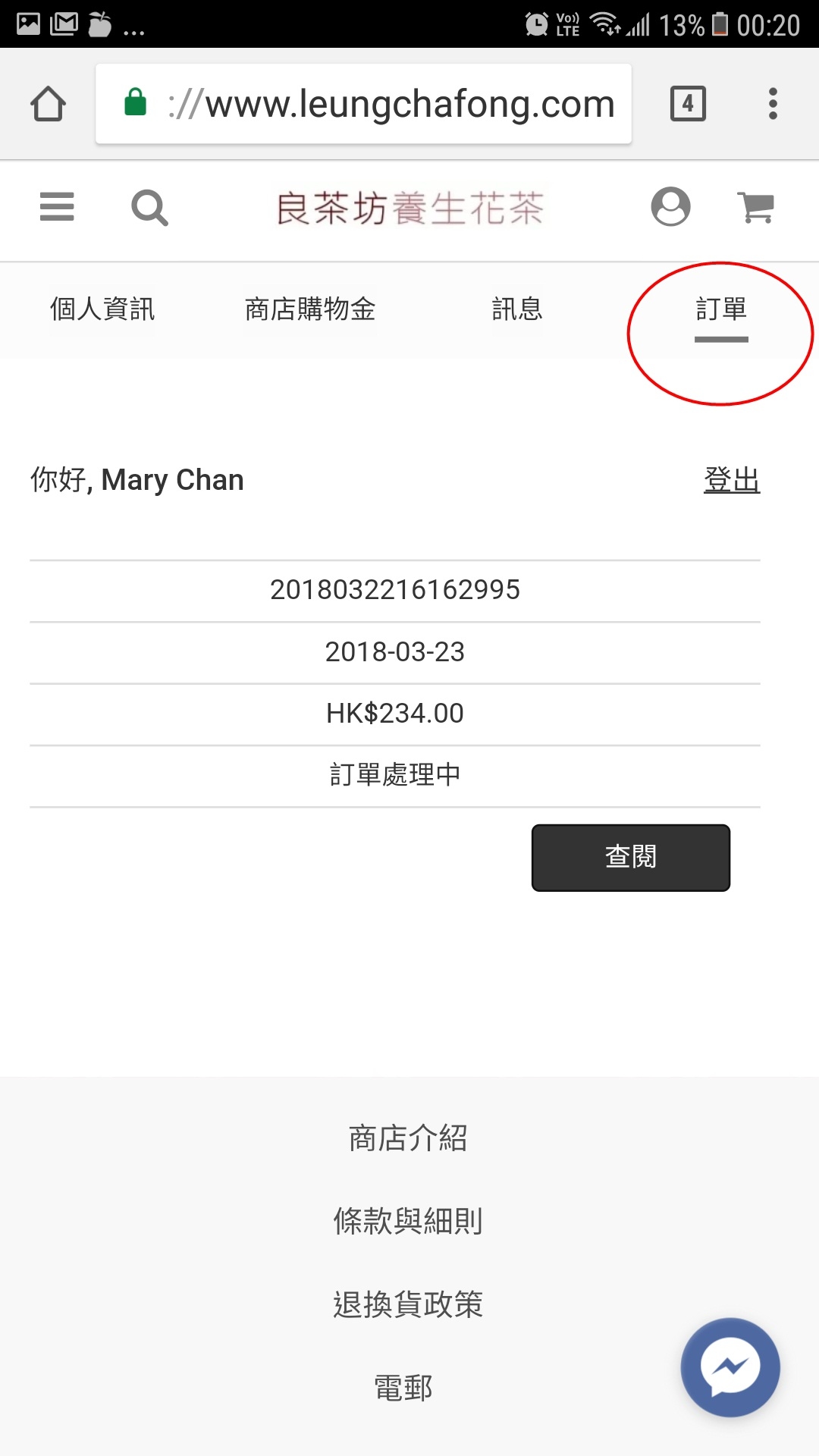 1. 請按此到我們網站 www.leungchafong.com ,按右上角人形按鈕登入。