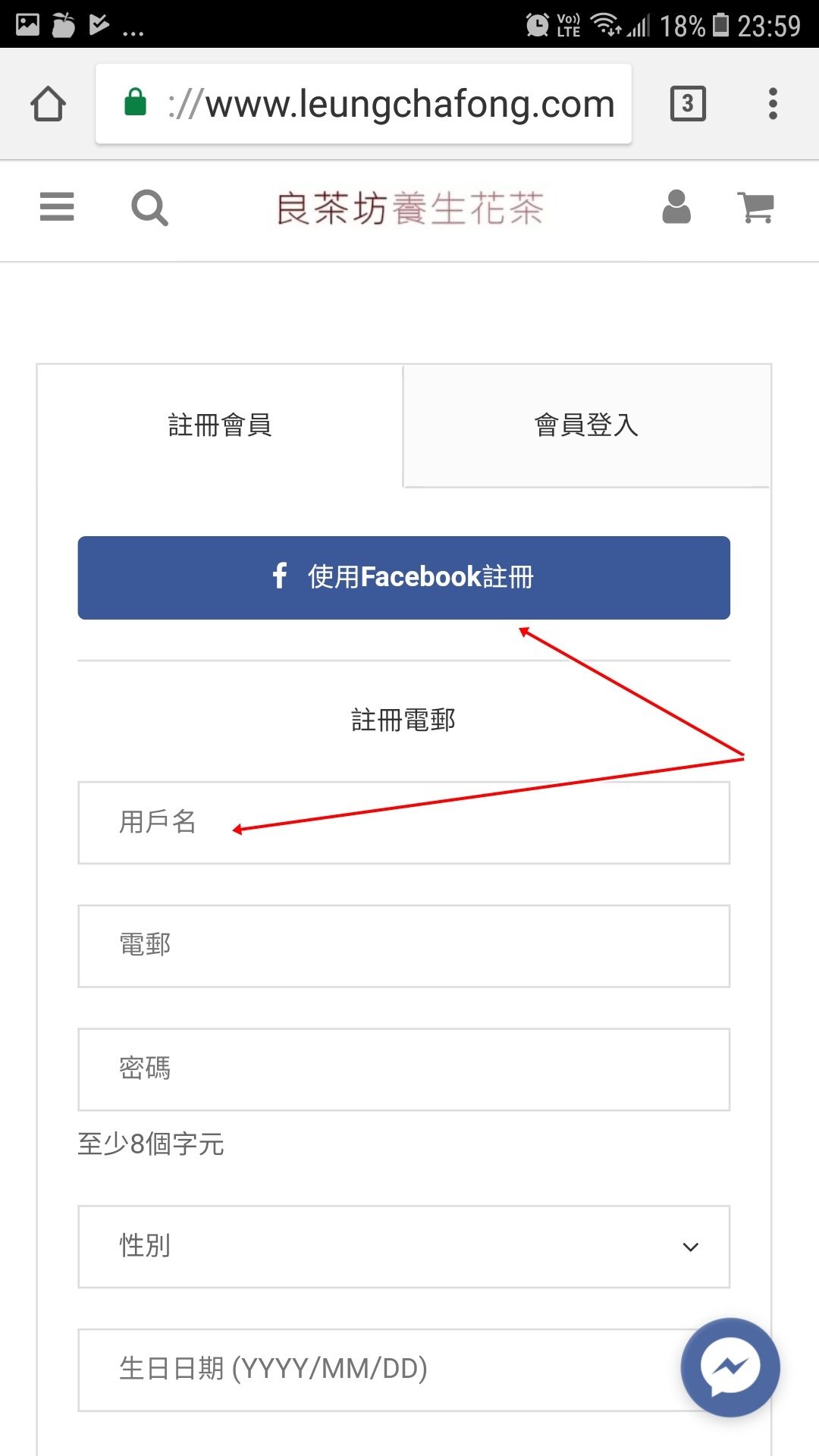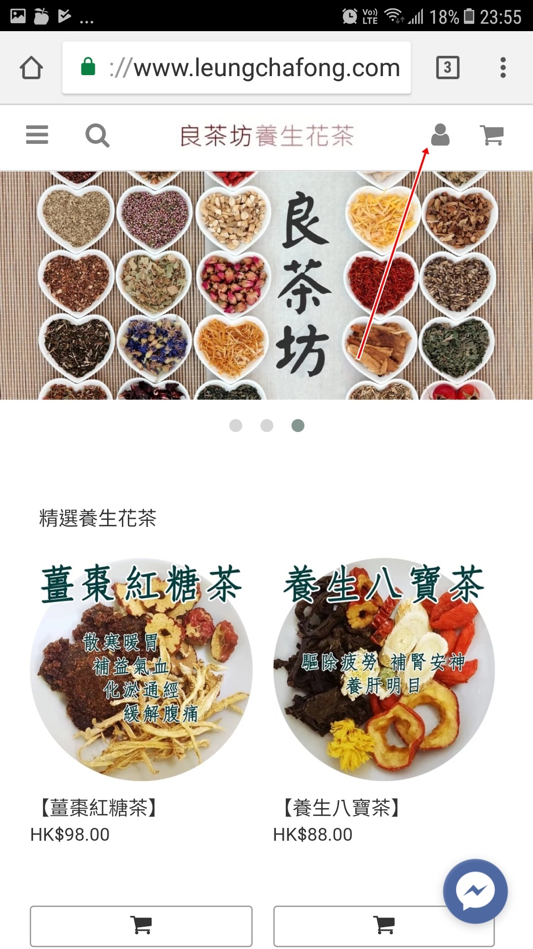 1. 歡迎您!請按此到我們網站 www.leungchafong.com ,按右上人型按鈕作會員登記。