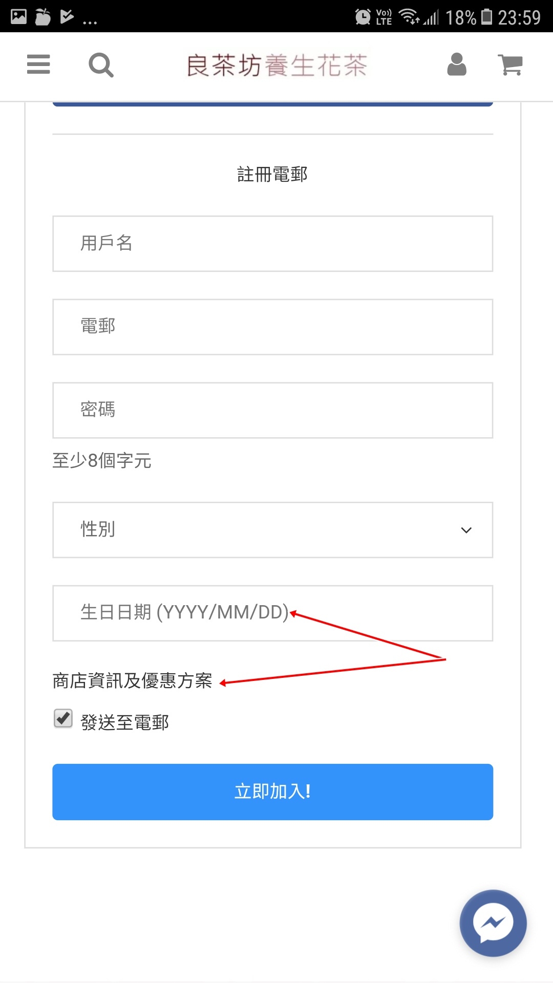 5. 同樣,(如步驟3) 請填寫生日日期,剔選接收最新優惠及商品資訊。