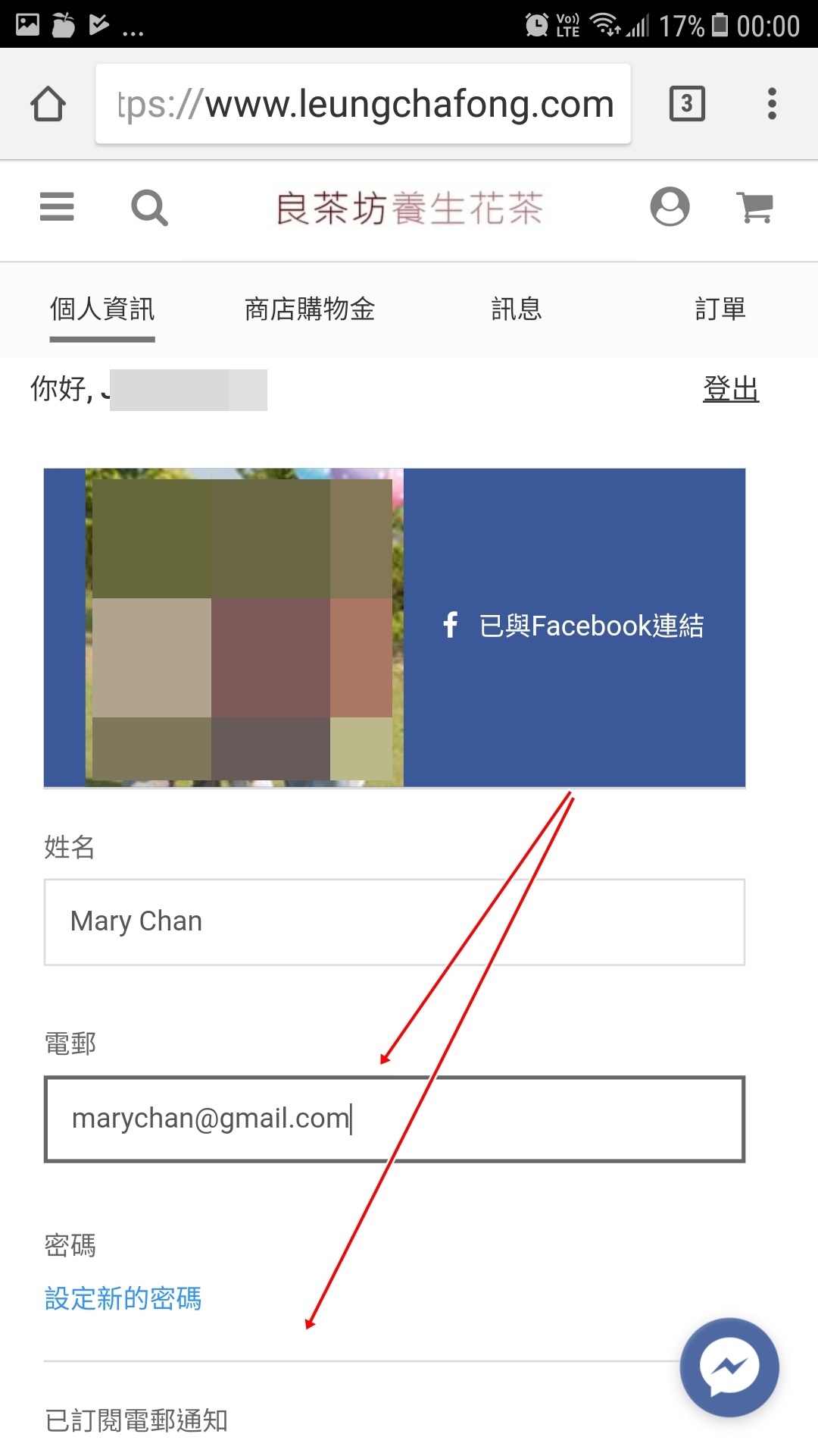 4. 如選擇用 Facebook註冊,系統會自動跟你的 Facebook連結。你可在此設定新的密碼。