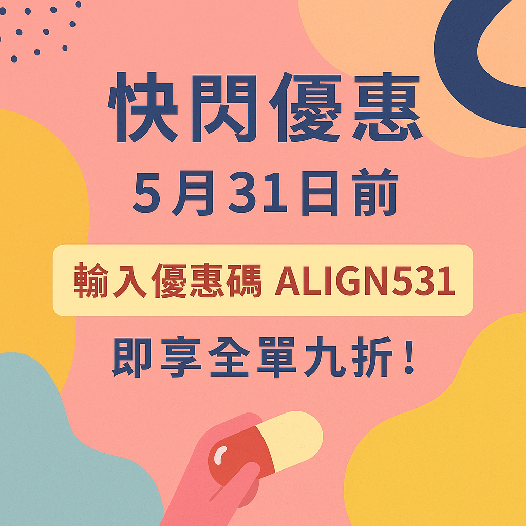 快閃優惠:5月31日前,輸入優惠碼 ALIGN531,即享全單九折!