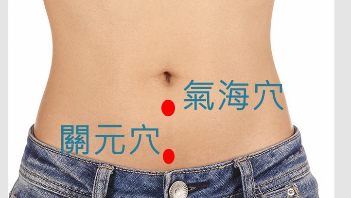 方法:拇指指尖放喺氣海穴處,先順時針按 2 分鐘,再點按半分鐘。每日 4 次,連續 3 日。